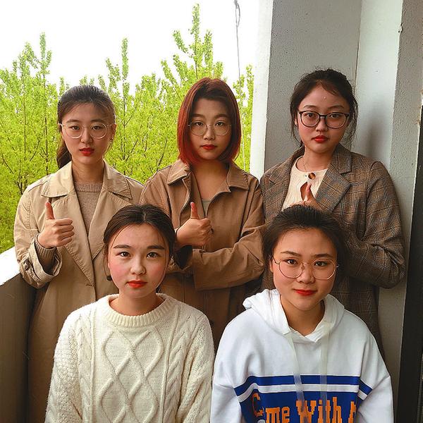406-3宿舍的5个女生合影。 纪月 摄
