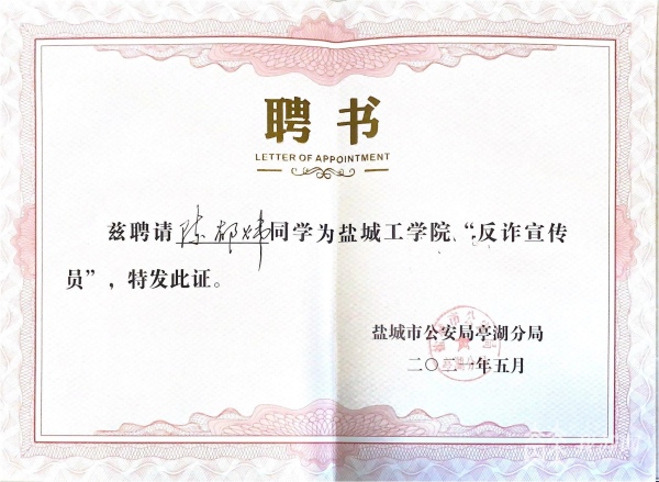 创建“无诈校园” 盐城15名大学生获聘“反诈宣传员”