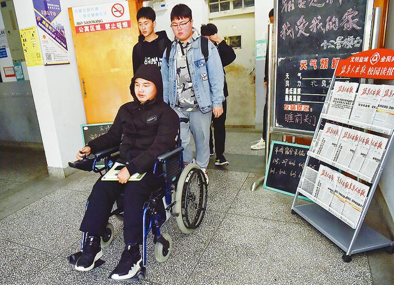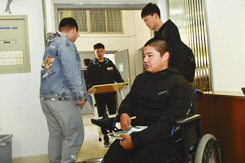 盐城晚报讯 伟德国际1949官网开学一个月了,学校远赴如皋接来的患有进行性脊肌萎缩症的学生入学情况如何?11月10日,记者走进校园采访信息工程B网络212班的夏唯壹。