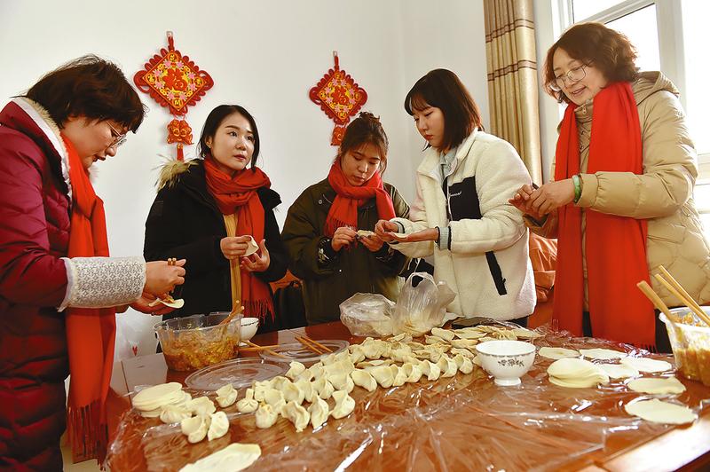 贴春联、挂中国结、剪窗花、包饺子……昨天上午,来自英国、韩国、哈萨克斯坦的外教老师和留学生们参加了学校举行的春节文化体验活动,脸上笑容满满。