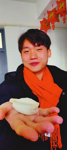 “把饺子馅放在中间后,将面皮捏在一起,捏出一个个小褶皱……”客厅里,老师们又手把手教起了包饺子。不一会儿,外教和留学生们也包出一个个有模有样的饺子。韩国留学生文鼎寅觉得中国饺子的味道非常鲜美,大家围在一起包饺子非常热闹、欢快,他喜欢如此独特的新年气氛。留学生权昭娟则表示,自己非常喜欢中国的文化,将来希望能留在中国做中韩翻译等相关方面的工作,为中韩友谊做出进一步的贡献。