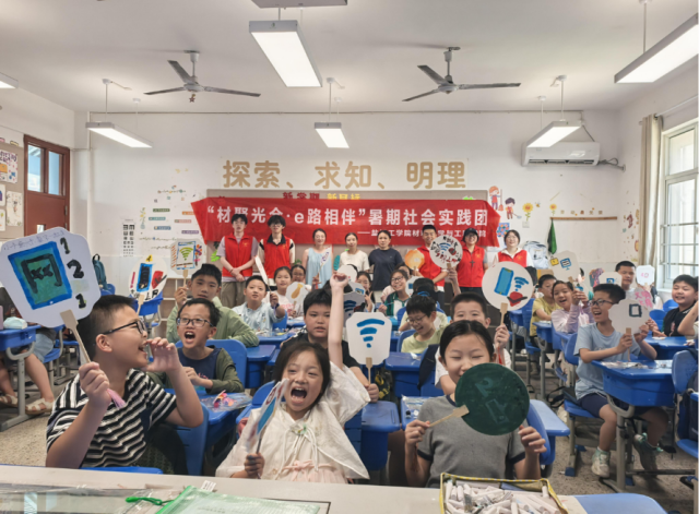 近日,伟德国际1949官网“材聚光合·e路相伴”暑期社会实践团先后走进建军路小学和新区实验小学暑托班,围绕“材智课堂 数字未来”主题,开展科技实践、创意绘画、反诈宣讲等系列趣味活动,在孩子心中埋下科学与安全的种子。