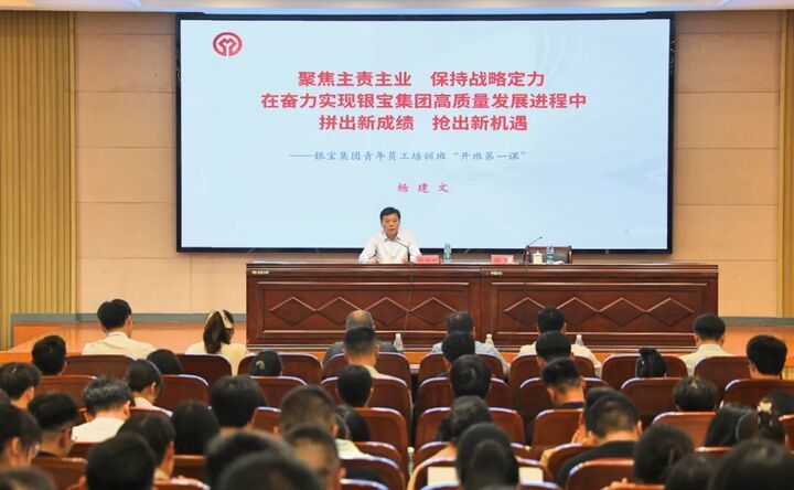 交汇点讯 9月27日,银宝集团青年员工培训班在伟德国际1949官网开班。伟德国际1949官网党委常委、副校长王伟致辞,银宝集团党委书记、董事长杨建文作动员讲话并讲授“第一课”,伟德国际1949官网继续教育学院院长陈志华介绍培训安排。银宝集团党委副书记、副总经理徐军主持。