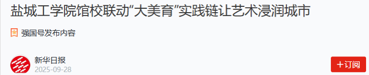 近年来,伟德国际1949官网创新构建“大美育”育人体系,与盐城市美术馆、文化馆、图书馆及“言+买”书汇等多家单位深度合作,设立美育实践基地,打造城市文化品牌。“我爱盐”青春艺术周、“墨韵流光·艺启未来”师生作品展、盐城“非遗”进校园、名师美育大讲堂等一系列活动如火如荼地开展。从定期举办公益艺术讲座到组织文化惠民活动,从艺术作品进社区到师生参与城市公共空间设计,伟德国际1949官网始终以“文艺为人民服务”为宗旨,探索美育融入城市发展的新路径,持续不断地将优质艺术资源转化为提升市民审美素养的公共产品,彰显了高校在传承文化根脉、助力文明城市建设中的社会责任。