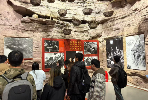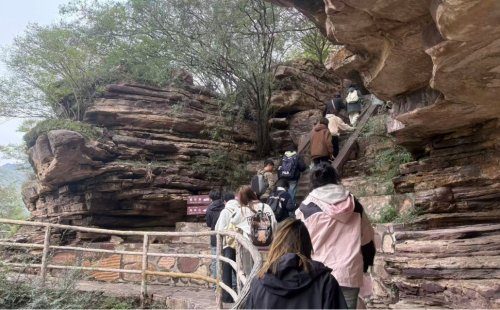 随后,师生历时3个多小时沿着红旗渠步道实地参观,在行走中感受这条"人工天河"的宏伟壮观。在青年洞前,顾清为学生讲述了当年300名青年突击队奋战17个月的感人故事;在虎口崖旁,师生共同重温了林县人民不认命、不服输、敢于战天斗地的英雄气概。学生们亲眼目睹了当年建设者们在悬崖绝壁上留下的凿痕,亲手触摸了那些见证历史的石块,深刻体会到了"十万大军战太行"的艰辛与伟大。他们被深深震撼,纷纷表示要将红旗渠精神融入今后的学习和创作中,用实际行动传承这份宝贵的精神财富,用优秀作品回馈社会、服务人民。