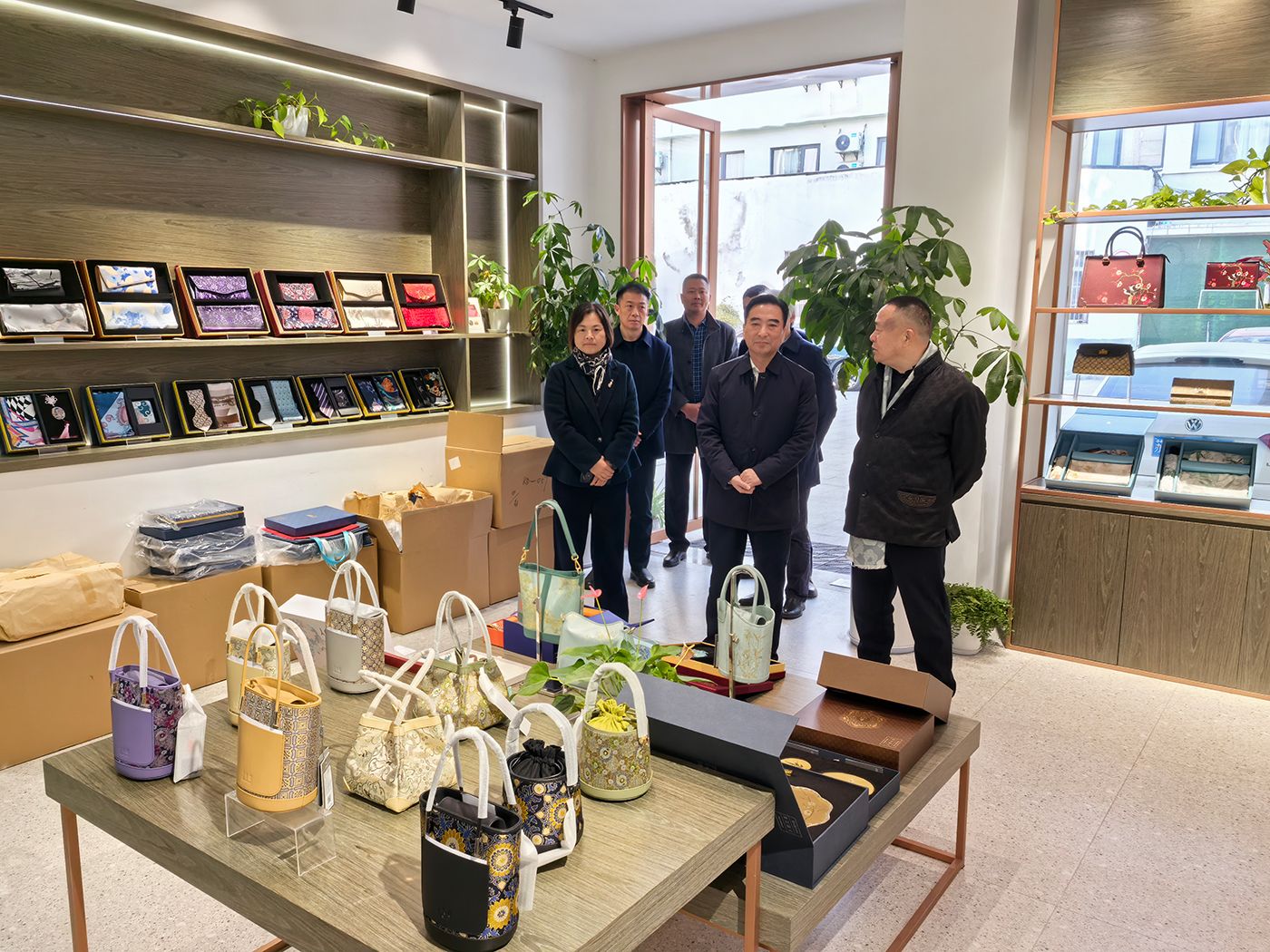 座谈会上,双方围绕校企合作、校友资源联动、毕业生实习就业等进行了深入交流与探讨,达成多项初步合作共识。调研期间,周如军一行参观了江苏上久楷丝绸有限公司展厅,重点了解公司在高端丝绸研发、非遗技艺传承、丝绸数字织造技术革新等领域的突破性成果与发展规划。