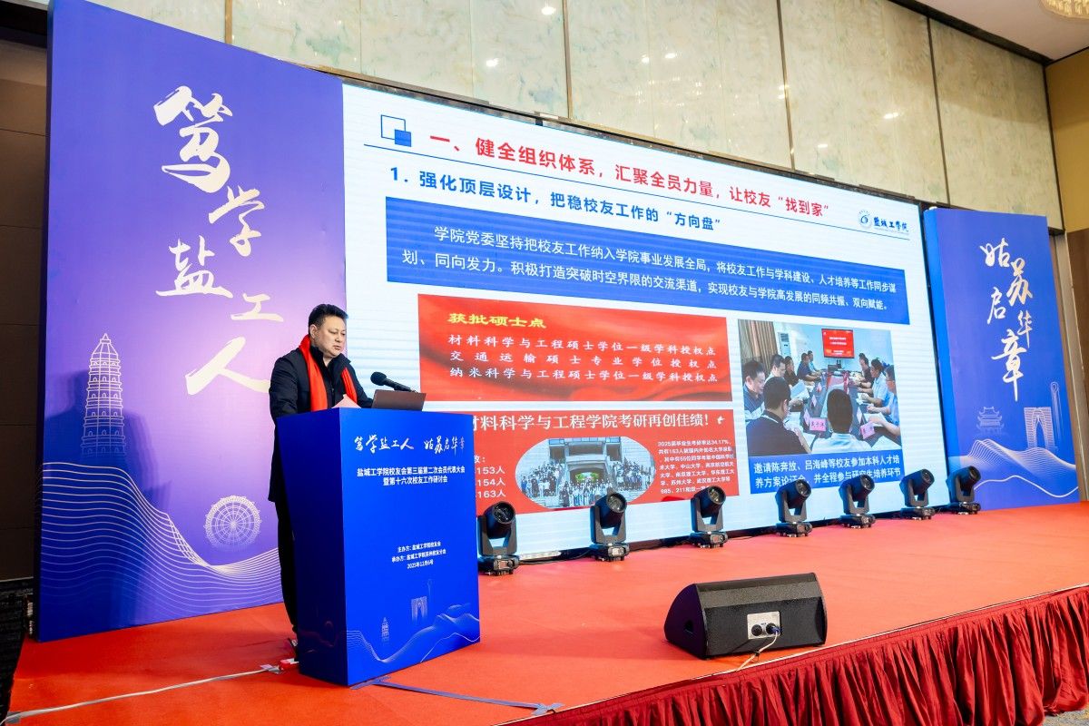 邵荣在主持年会时深情寄语与会校友。他指出,盐工的过去、现在和未来都离不开校友的深度参与,期盼校友以“领头人”的眼光,站在行业发展前沿,为母校学科专业建设提供指导,帮助母校更好地把握社会需求和行业趋势,培养更适应时代发展的优秀人才;以“过来人”的身份,到母校担任兼职硕导、产业导师、创业导师,传授企业知识,分享人生经验,助力学弟学妹成长成才;以“盐工人”的身份,在扩大办学资源、拓展合作渠道、提升社会影响力等方面,加大和母校的交流合作,助力学校高质量发展。