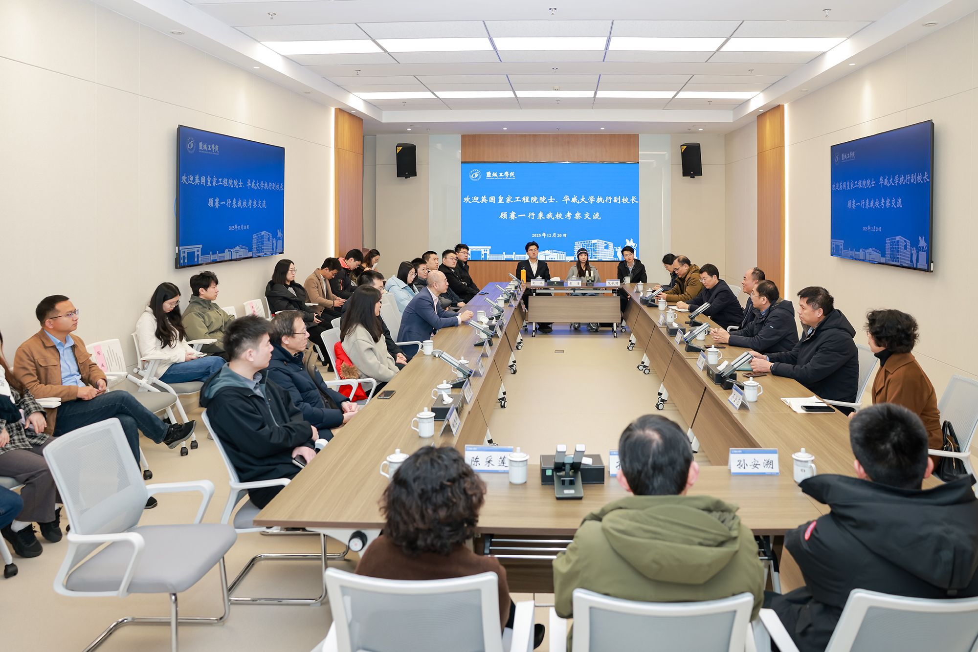 12月20日上午,英国皇家工程院院士、华威大学执行副校长顾赛率英国杰出青年人才协会一行34人到访伟德进行考察交流。党委副书记、校长邵荣,副校长、盐城市政协副主席丁成,市发改委副主任陈锋出席交流活动。校办、科技处、研究生院、国合处等部门主要负责人参加了座谈交流。
