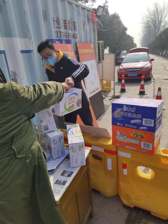刘泽为村民发放泡面与牛奶