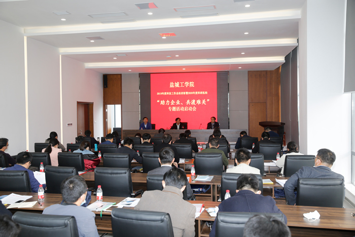 4月30日下午,在盐都国家高新区盐城大学科技园,学校召开科研机构“助力企业、共渡难关”专题活动启动会。副校长王路明出席会议并讲话,科技处主要负责人就专题活动进行部署,大学科技园主要负责人介绍了园区的相关创业政策。各理工科二级学院院长、产业技术研究院院长及校属研究所所长、科技产业处与大学科技园全体工作人员参加了会议。