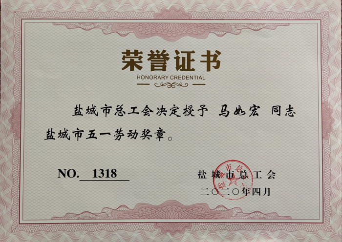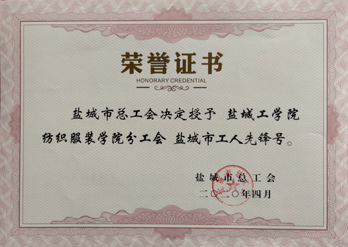 4月24日,盐城市总工会下发《关于授予2020年盐城市五一劳动奖和工人先锋号的通知》(盐工发〔2020〕23号),表彰2019年以来为促进全市经济高质量发展和社会和谐稳定作出积极贡献的先进集体和个人,伟德纺织服装学院分工会获“盐城市工人先锋号”荣誉称号,机械优集学院马如宏老师获“盐城市五一劳动奖章”荣誉称号。