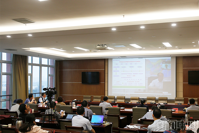 副校长魏少华主持报告会并在主会场和宣传部、教工部、教务处和各教学院部党政负责人聆听报告
