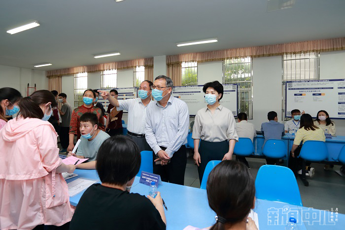 校党委书记刘祖汉、副校长邵荣和盐城市人社局党委书记、局长嵇红梅等在现场指导
