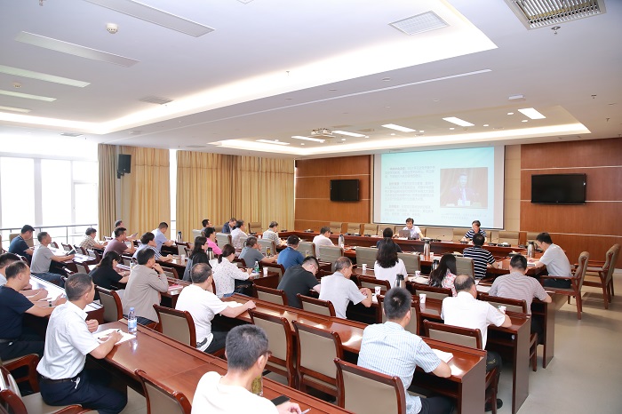 7月6日下午,在南校区行政楼九楼会议室,党委常委、副校长宋长春为机关第八支部党员及后勤服务集团党员作党史学习教育专题党课。机关第八党支部书记田为龙主持。