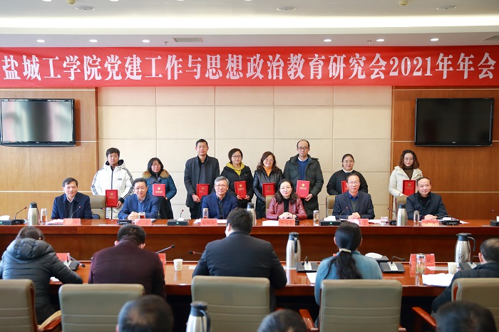 倪自银宣读学校党建工作与思想政治教育研究会关于表彰2021年年会优秀论文的决定。会议对马晓英、苏珍、吴刚、宋青、罗郁然、顾清、吕宾、王红梅、王灿星等50位优秀论文作者进行了表彰。