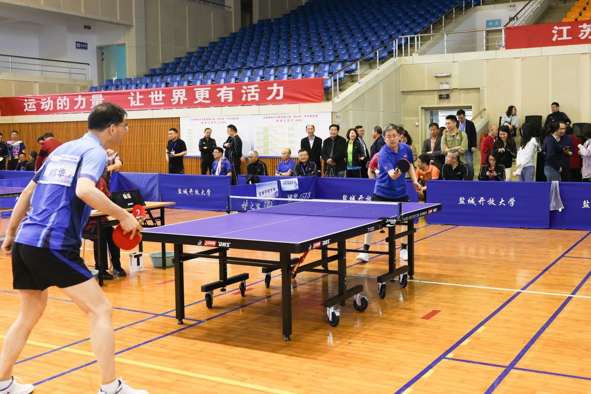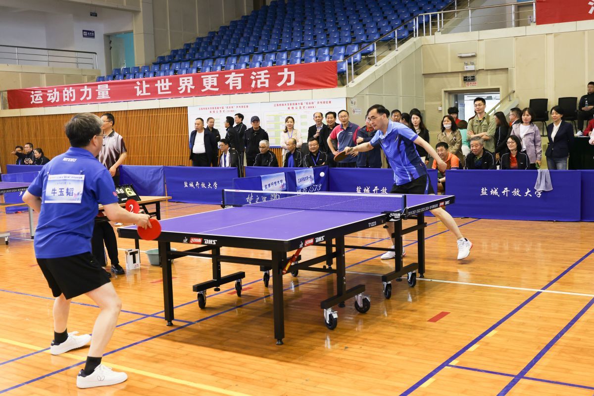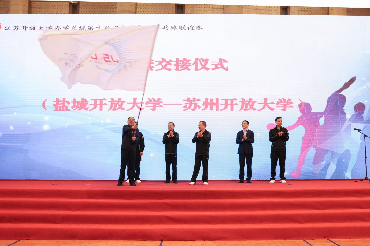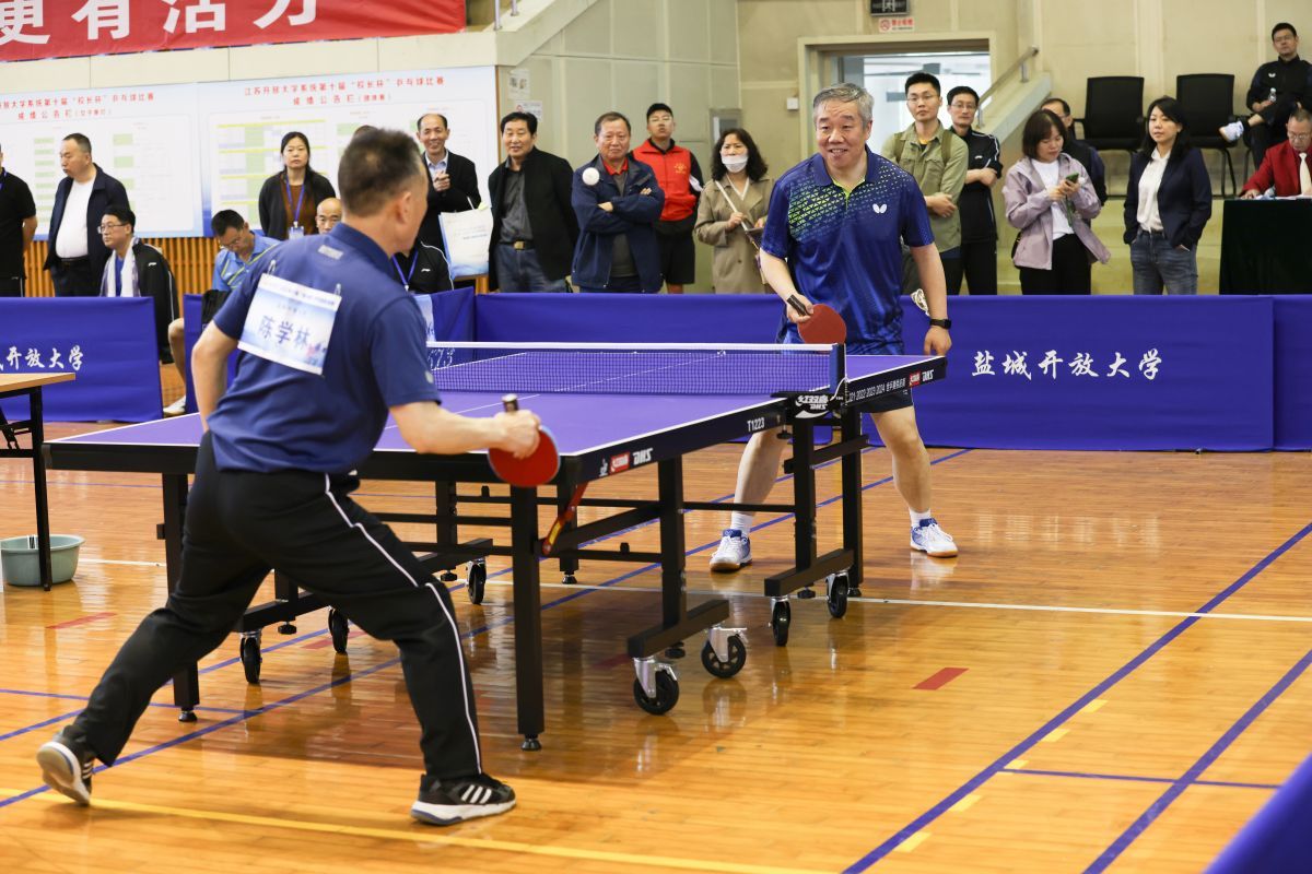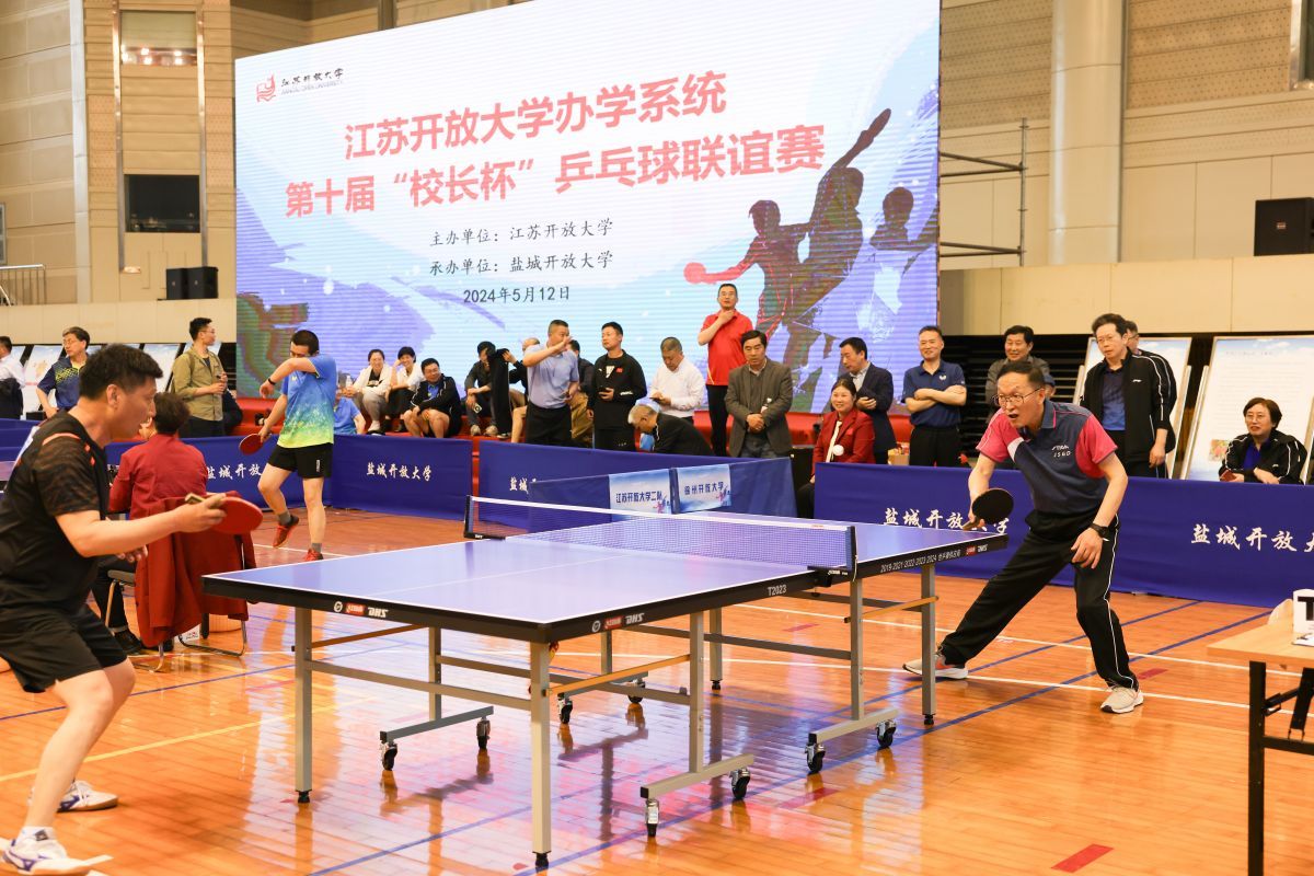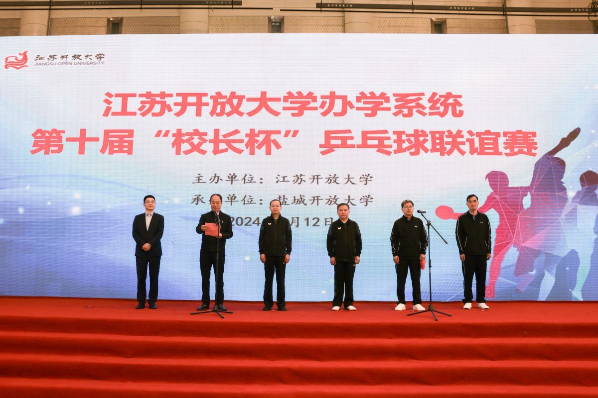 5月12日上午,江苏开放大学办学系统第十届“校长杯”乒乓球联谊赛在北校区体育馆拉开帷幕。本次活动由江苏开放大学主办,盐城开放大学承办,共有来自江苏开放大学办学系统16支队伍140余人参赛。江苏开放大学党委书记荆晅,党委副书记、校长丁荣余,伟德国际1949官网党委副书记、校长邵荣,党委常委、副校长王伟,盐城开放大学党总支书记、校长陈志华等出席开幕式。开幕式由江苏开放大学党委副书记牛玉韬主持,荆晅宣布开幕。伟德由党委书记方海林,党委副书记、校长邵荣,党委副书记薛浩,党委常委、副校长崔刚,原党委常委、副校长宋长春组成的校领导队应邀参加比赛。