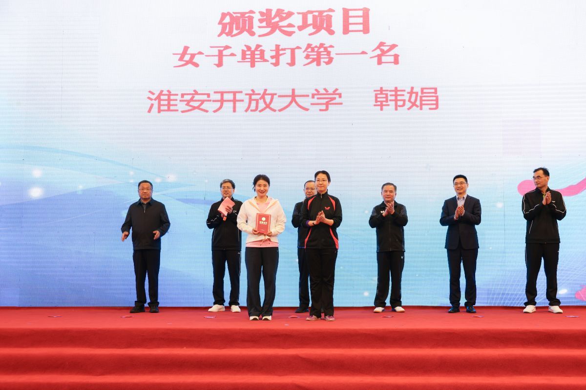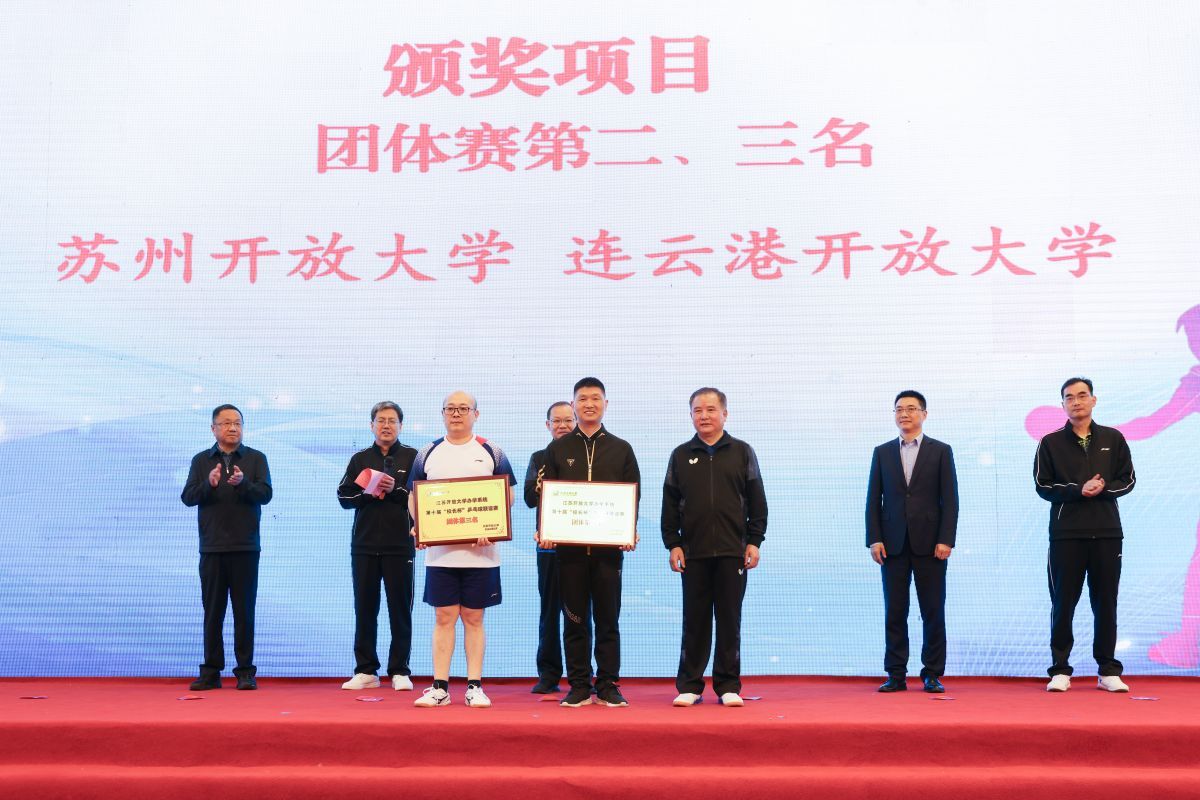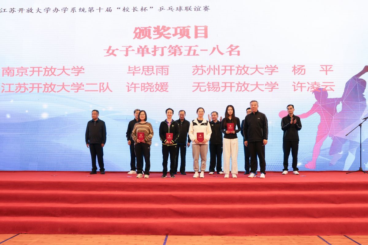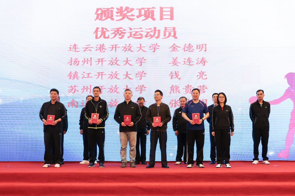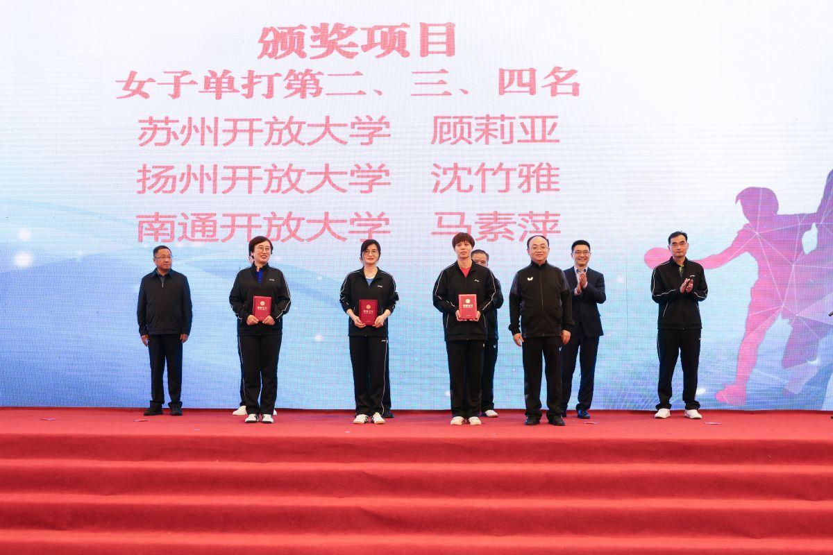 经过一天紧张的比赛,最终常州开放大学、苏州开放大学、连云港开放大学、镇江开放大学、泰州开放大学、扬州开放大学分获团体前六名,淮安开放大学韩娟等8人获女子单打前八名,连云港开放大学金德明等5人获得优秀运动员称号。