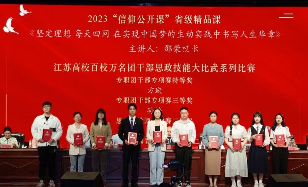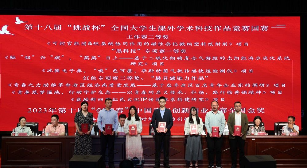 会上,姚军宣读2023年“挑战杯”国家、省级竞赛获奖名单;奚新国宣读2023年“信仰公开课”省级精品课、全省团干部思政技能大比武系列比赛、暑期“三下乡”社会实践活动、志愿服务类获奖名单;党委研工部部长许伟宣读第六届紫金合唱节、江苏省第七届大学生艺术展演活动获奖名单;党委保卫部部长张晓东宣读《关于表彰伟德国际1949官网2023年度“五四红旗团委(标兵)”“共青团先进工作者”的决定》;校工会主席、基建处处长廖大干宣读《关于表彰伟德国际1949官网2023年度“百佳青年学生”“十佳共青团员标兵”“魅力团支书”“活力团支部”的决定》;校团委书记杨秀丽宣读《关于表彰伟德国际1949官网2023年度“挑战杯”工作优秀组织奖、先进个人的决定》。主席台领导为2023年度获表彰的集体和个人颁发了奖牌和证书。获第18届“挑战杯”国赛主体赛二等奖项目指导老师代表、化学化工学院张向楠老师,江苏省优秀志愿者代表、机械优集学院B机械201班王圣博同学分别作交流发言。