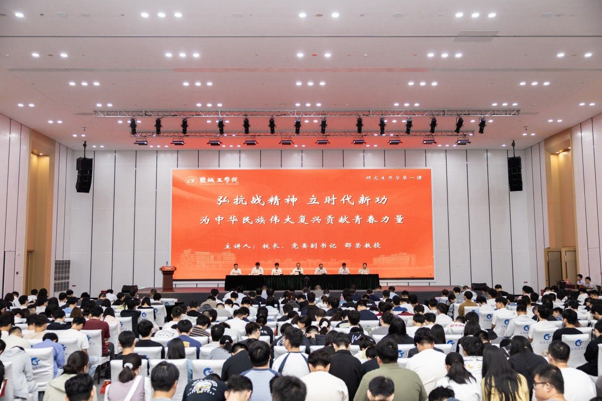 邵荣以《弘抗战精神 立时代新功——为中华民族伟大复兴贡献青春力量》为题,为全体研究生讲授“开学第一课”。今年是中国人民抗日战争暨世界反法西斯战争胜利80周年,他深情回顾了新四军在盐城重建军部的红色历史,强调盐城是一座英雄之城、红色之城,盐工学子要赓续“铁军精神”,厚植家国情怀。邵荣对2025级研究生提出三点希望:一是育爱国之心,在立根固魂中把准人生航向;二是秉创新之炬,在敢于挑战中实现超越突破;三是持恒久之力,在厚积薄发中实现蜕变升华。他鼓励研究生面向国家战略需求开展研究,坚持学用结合、“把论文写在车间”,努力成为推动新质生产力发展的高层次人才。