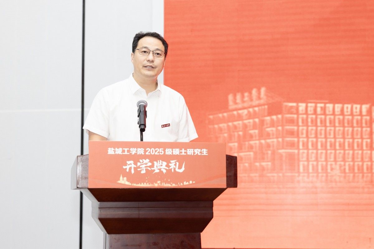 金秋九月,槐翠湖清,惠风和畅。9月24日下午,学校在盐城高新区科技广场报告厅举行2025级研究生开学典礼,迎接来自全国各地的528名研究生新同学。校党委副书记、校长邵荣,盐城高新区党工委副书记、管委会主任高翔,校党委常委、副校长王资生、王伟出席。党委常委、副校长张勤芳主持。学校相关职能部门负责人、盐城高新区相关职能部门负责人、各研究生培养学院党政负责人、导师代表、企业嘉宾、研究生辅导员及全体2025级新生参加。