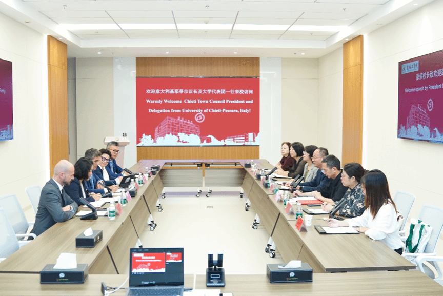 9月25日上午,意大利基耶蒂市议长及基耶蒂-佩斯卡拉大学代表团一行来伟德访问。党委副书记、校长邵荣在产教融合大楼会议室会见代表团,国际交流与合作处、经济管理学院相关负责同志参加交流。