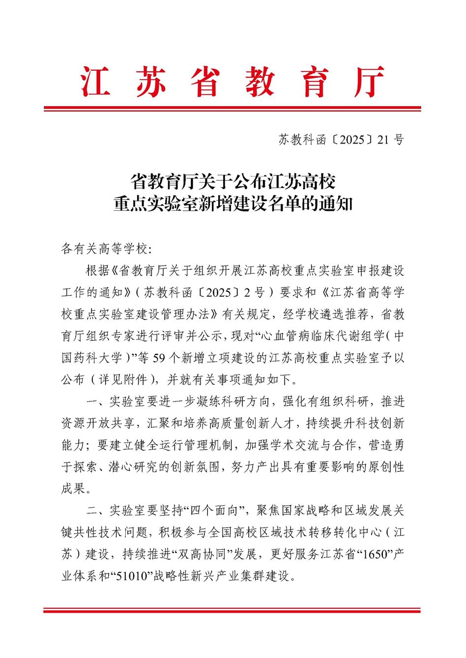 近日,江苏省教育厅下发《省教育厅关于公布江苏高校重点实验室新增建设名单的通知》(苏教科函〔2025〕21号),在全省范围内共新增立项建设59个江苏高校重点实验室,伟德“新能源退役资源再生再造技术及智能装备”和“AI融合储能工程”新增为江苏高校重点(建设)实验室,标志着伟德在推动学科交叉融合、服务区域产业发展的道路上又迈出坚实一步,省级高水平科研平台建设取得新突破。