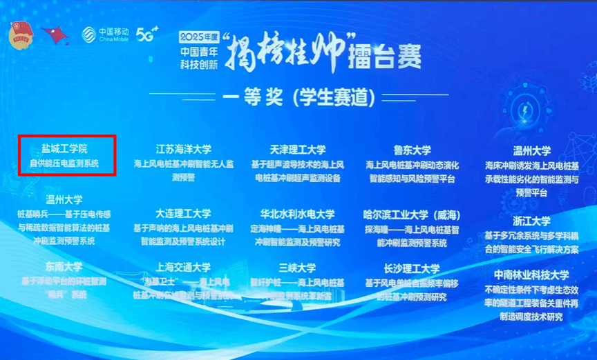 由机械优集学院推报,纪超、顾金彤老师指导,谷泉烨、王栋等5位本科生共同完成的《自供能压电冲刷监测系统》项目,揭榜华能国际电力江苏能源开发有限公司清洁能源分公司发布的榜题“海上风电桩基冲刷智能监测及预警”,聚焦我国“双碳”目标下清洁能源核心领域——海上风电,立足压电传感与能量收集原理,研发出自供能压电冲刷监测系统。系统以“自供能+精准监测”为核心:通过压电元件将海水冲刷机械能转化为电能,实现设备自主供电;集成高精度传感模块与阵列数据算法,实时采集桩基冲刷深度、应力等数据,无线传输至终端平台,为海上风电桩基的安全预警与维护决策提供科学、可靠的技术支撑。