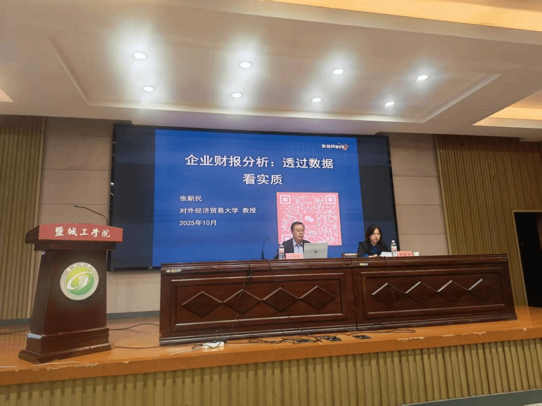 10月16日上午,学校邀请对外经济贸易大学原副校长、财政部会计名家张新民教授来校作题为《财务报表分析:透过数据看实质》的报告。校党委常委、副校长邢晓平主持,经管学院班子成员及师生代表参加本次报告会。