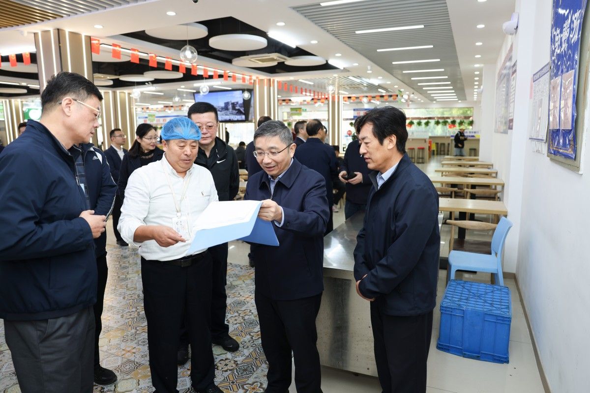 在学生食堂,江涌、李兰翔一行与就餐学生亲切交流,了解日常消费水平,听取学生对饭菜价格、口味等方面的意见建议,并检查食品安全卫生管理措施。他们指出,要严格把控食材质量及加工制作全过程,切实保障师生饮食安全与健康。