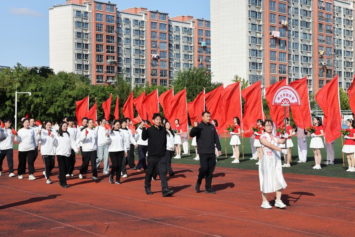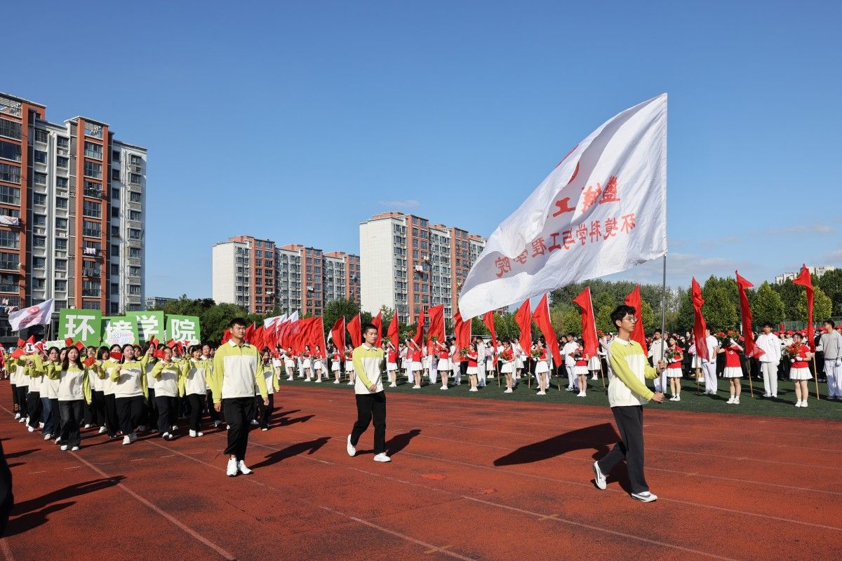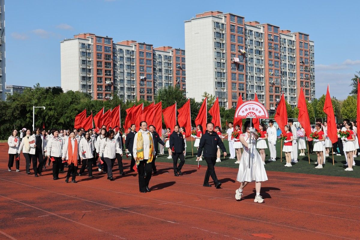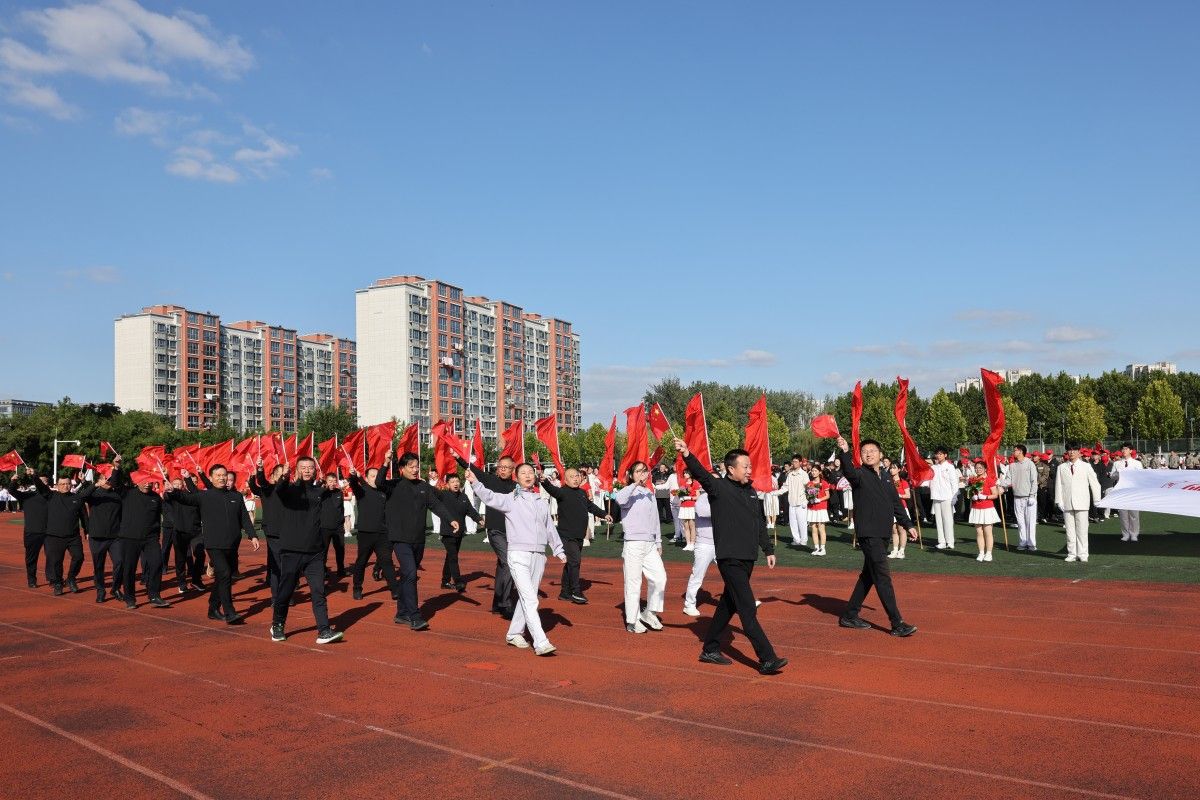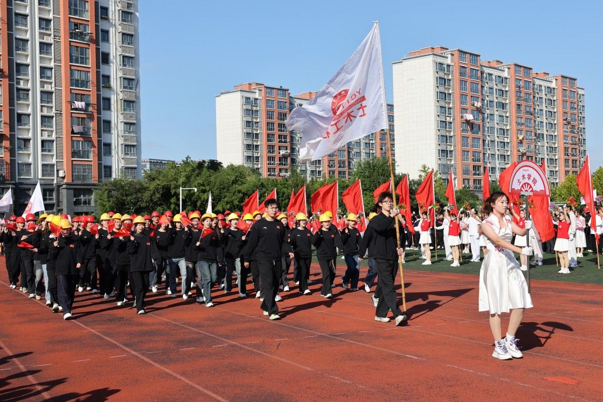 开幕式上,在国旗的引领下,校旗方阵、会徽方阵、鲜花方阵、红旗方阵、裁判员方阵,以及26个分工会、18个学院的运动员方阵依次通过主席台。他们步伐稳健、精神抖擞、意气风发,赢得全场阵阵热烈掌声,正式拉开运动会序幕。