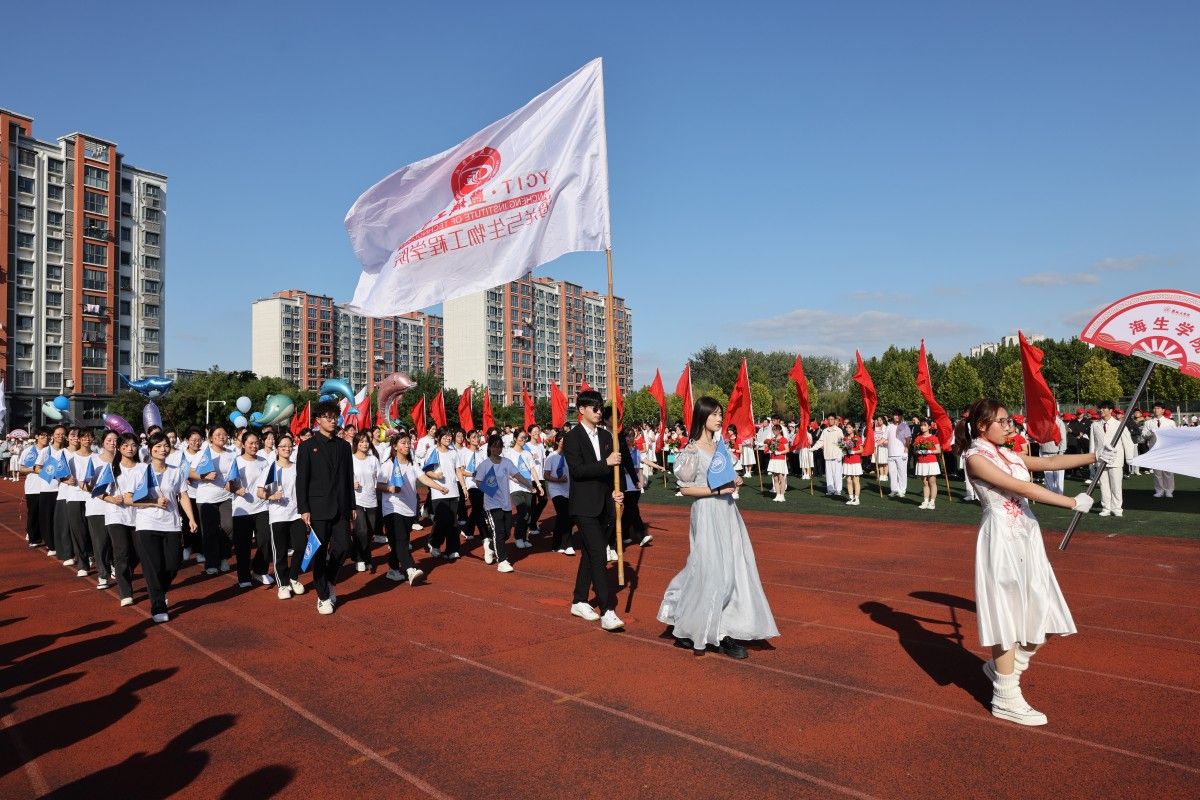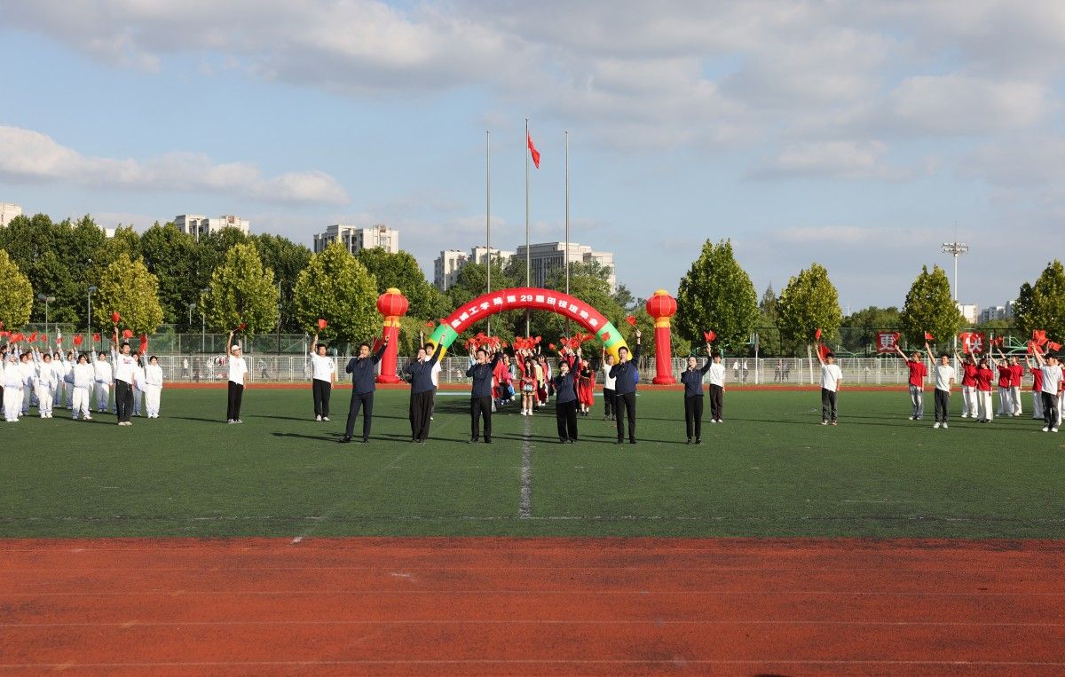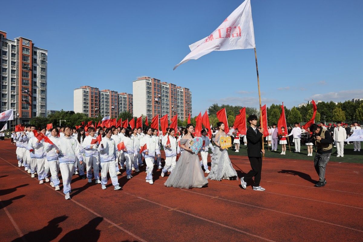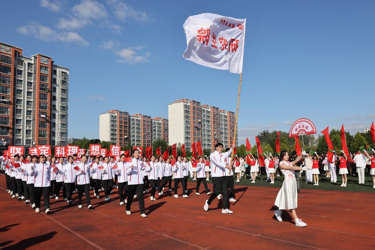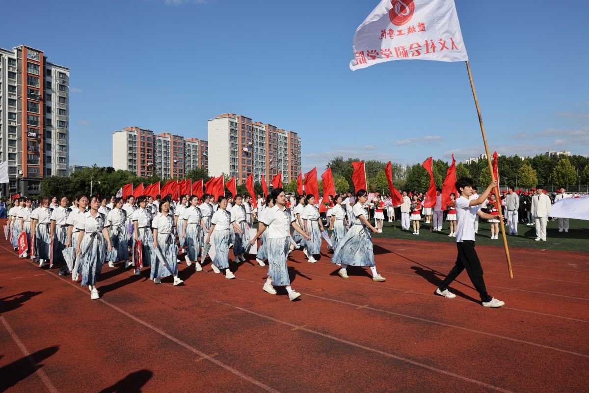 开幕式上,在国旗的引领下,校旗方阵、会徽方阵、鲜花方阵、红旗方阵、裁判员方阵,以及26个分工会、18个学院的运动员方阵依次通过主席台。他们步伐稳健、精神抖擞、意气风发,赢得全场阵阵热烈掌声,正式拉开运动会序幕。