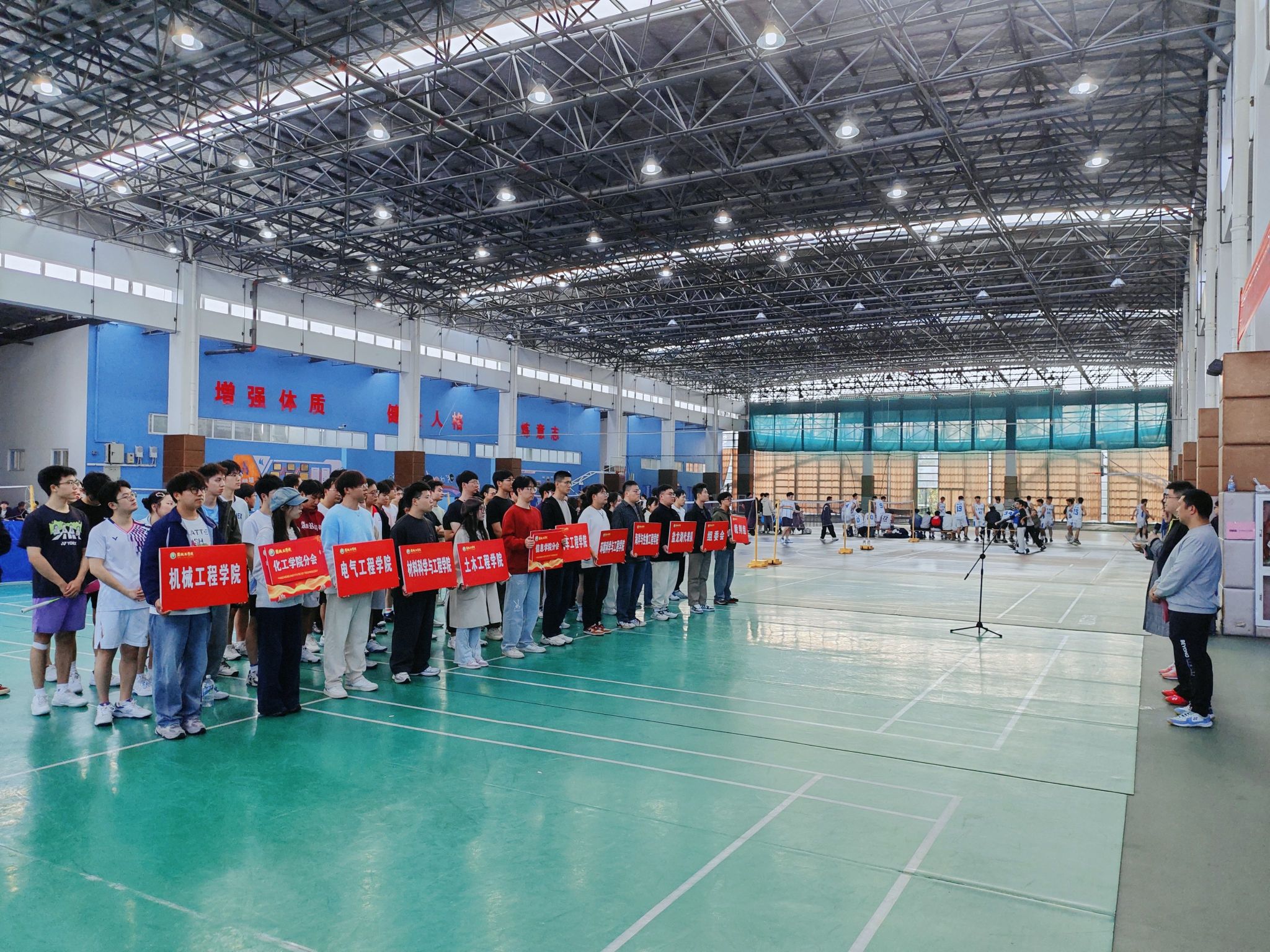 为丰富研究生校园文化生活,增强各学院凝聚力,锻造团队协作与坚韧拼搏的意志品质,11月2日,由党委研工部主办、校研究生会承办的2025年研究生“研途精彩,羽你共进”羽毛球比赛在希望大道校区风雨操场顺利举行。党委常委、副校长张勤芳出席活动并宣布比赛开幕,党委研工部副部长、研究生院副院长姜华致辞,研究生院副院长、学科办副主任诸华军主持开幕式,裁判员代表张旭、运动员代表梁聪分别宣誓。来自全校各研究生培养学院及盐龙湖代表队的近70名运动员参加比赛。