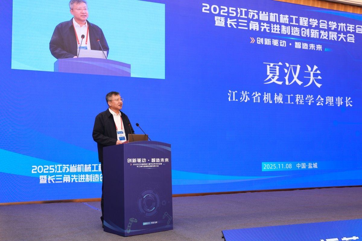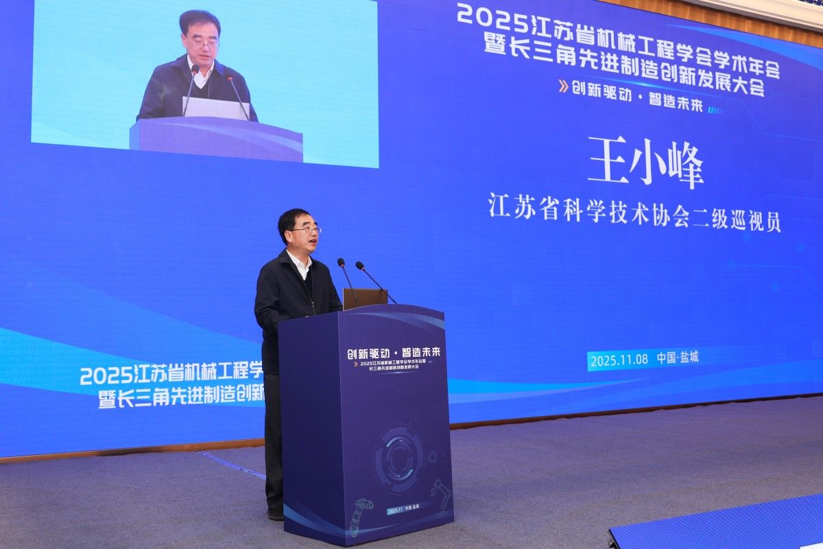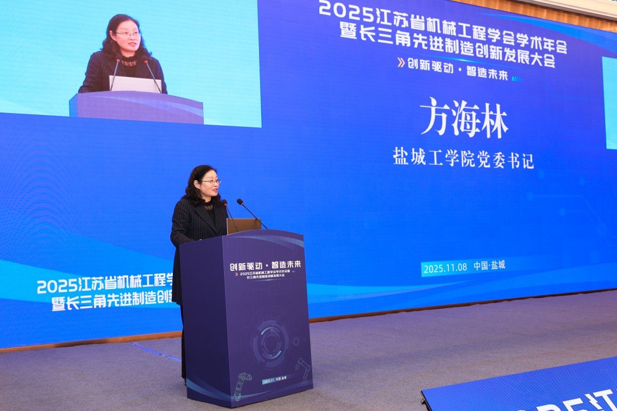 2025江苏省机械工程学会学术年会暨长三角先进制造创新发展大会于11月7日至9日在盐城召开。此次大会由江苏省机械工程学会主办,伟德承办,是长三角地区机械工程领域一次高层次、高水平的学术盛会。大会以“创新驱动·智造未来”为主题,汇聚了中国工程院院士陈学东、天津大学教授王国彪等知名专家,以及来自高校、企业和科研机构的400余名代表,共同围绕人工智能与机械工程、绿色制造、智能制造等前沿领域展开深入交流。江苏省科学技术协会二级巡视员王小峰、盐城市委副秘书长唐宏、江苏省机械工程学会理事长夏汉关、伟德国际1949官网党委书记方海林出席并致辞。