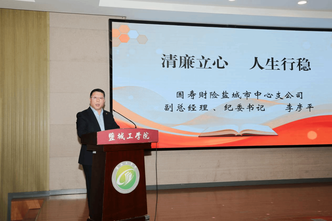 亭湖公安分局反诈中心朱文军警官以真实案例为切入点,深入剖析了电信诈骗与非法网贷的常见作案手法及严重社会危害,有效提升了学生识别与防范金融风险的能力,警示青年学子坚决远离诈骗陷阱。在“高管话清廉”环节,国寿财险盐城支公司纪委书记李彦平结合自身丰富从业经历,分享了“以廉立心、行稳致远”的职业感悟,为青年学子点亮了职业道路上的“清廉明灯”。