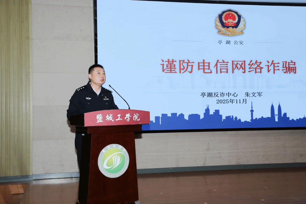 亭湖公安分局反诈中心警官朱文军作反诈宣传
