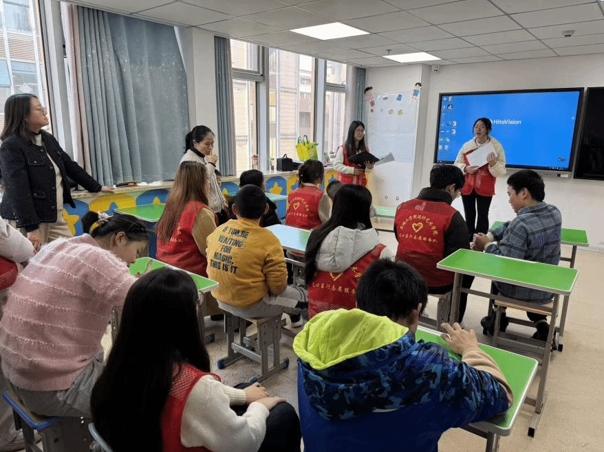 为呼吁更多社会力量关注和帮助孤独症患者群体,践行高校社会责任,传递人文关怀与青春温暖,11月26日下午,设计艺术学院团委带领学院“艺心益行”志愿服务队,赴盐城德馨医院儿童康复院区开展“艺暖童颜 爱满德馨”志愿服务活动。志愿者们以艺术为桥梁,用耐心与爱心为孤独症儿童带来了一场充满温暖与欢乐的沉浸式体验,让他们在陪伴中感受关爱。