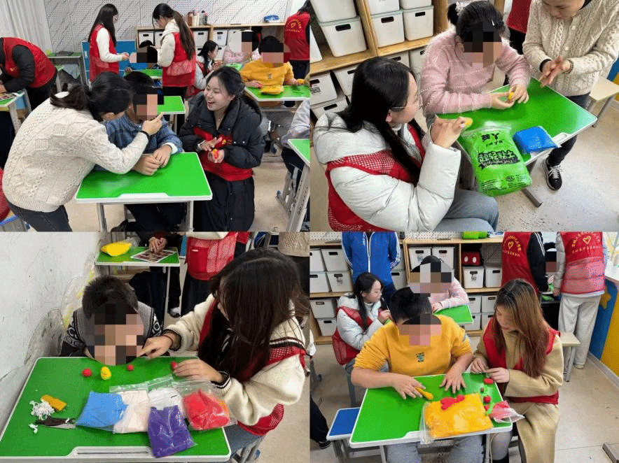 活动在温馨的开场暖场中拉开序幕。主持人以亲切柔和的语气向孩子们问好,消除他们的陌生感,让孩子们在舒适的氛围中开启美好时光。志愿者们按照“一对一匹配”原则,与孩子们快速建立起信任的联结。“礼暖人心”环节暖意融融,志愿者们将亲手制作的手工作品送给孩子们,让孩子们切实感受到温暖与关怀。“红韵润心”宣讲环节别具匠心,志愿者以童趣化的语言,讲述了盐城滨海县“中国好人”徐振理四十多年来致力于助力烈士寻亲的感人故事,着重传递“勇敢、互助、坚守”的精神内核,生动的讲述赢得了孩子们的专注聆听,也让红色精神在幼小的心灵中埋下种子。在“手塑匠心”环节,在志愿者的轻声指导下,孩子们自由地揉、搓、压黏土,将简单的材料变成自己心中喜爱的模样。过程中,志愿者始终耐心陪伴,尊重每个孩子的创作节奏与想法,让孩子们在动手实践中感受艺术的乐趣。