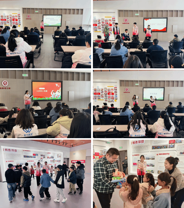 活动在“青讲青听”理论宣讲团带来的红色主题宣讲中拉开帷幕。宣讲团成员结合情景剧形式,生动讲述抗战胜利80周年的光辉历程,并通过互动问答引导孩子们感悟爱国情怀。随后的文艺表演环节精彩纷呈:古风舞《云裳羽衣曲》韵味悠长,现代舞《爱你》朝气蓬勃,歌曲《一格格》《不完美小孩》温暖真挚,赢得了现场孩子们的阵阵掌声。游戏互动环节中,“看字说颜色”“桃花朵朵开”等趣味游戏拉近了大学生与孩子们的距离,欢声笑语此起彼伏,现场气氛温馨而热烈。