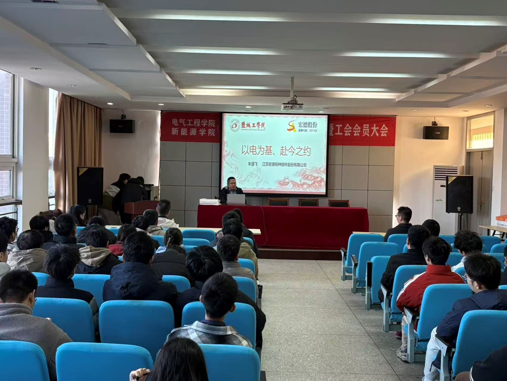 首场报告由朱懂飞校友主讲,报告题目为《以电为基,赴今之约——一名盐工电气人的成长答卷》。朱懂飞校友现任江苏宏德特种部件股份有限公司副总经理兼机加工车间主任、生产中心主任,拥有丰富的企业技术管理与项目实施经验。他结合自身从盐工学子到企业高管的成长历程,分享了在电气故障诊断、数控设备维修、智能制造项目推进等方面的实践心得,还以一位“学长”的身份,向在场学弟学妹深情寄语,要夯实专业基础,切勿轻视电路原理、PLC编程等“基本功”;要培养“解决问题”的思维,从“为什么”出发,锻炼逻辑推理与动手能力;要不畏艰苦,深入一线,将实践作为最好的课堂,积累宝贵的“经验财富”;要学会沟通表达,做技术与沟通兼备的复合型人才;要不忘初心,坚持长期主义,相信深耕与积累的力量。他以自身从一线维修员到副总经理的十六年坚持为例,鼓励在场青年师生要踏实前行,时间终将回报每一份努力。