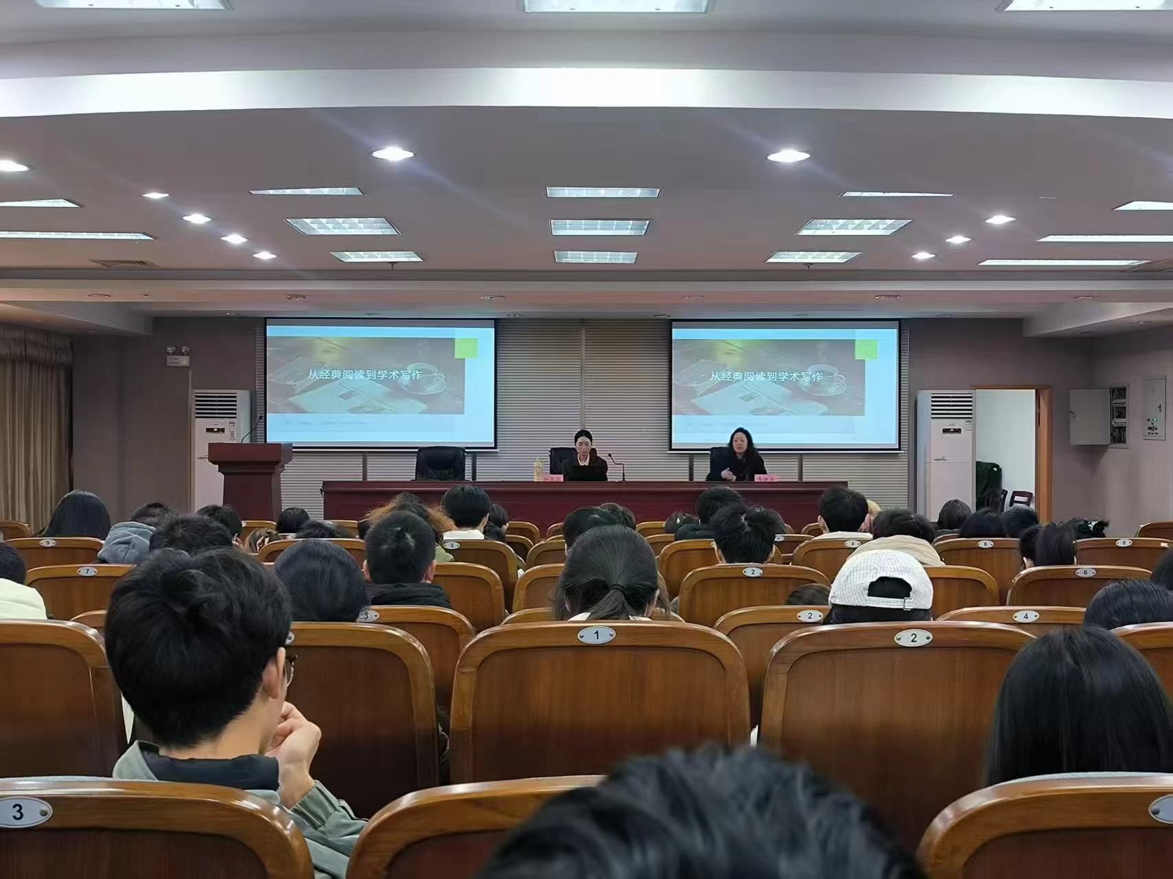 赵晶晶从经典阅读与学术写作的内在关联切入,系统阐释了经典文本作为学术研究思想源泉与方法论基石的重要意义。她围绕从“读者”到“研究者”的视角转换,详细讲解了经典深度阅读的方法、学术观点的发现与提炼,以及学术写作的规范与结构构建,引导同学们逐步打通“深度阅读—批判思辨—高质量写作”的学术路径。讲座内容层层深入、逻辑清晰,对理解经典阅读与学术写作之间的联系、强化学术思维能力具有切实的指导意义,现场师生受益匪浅。