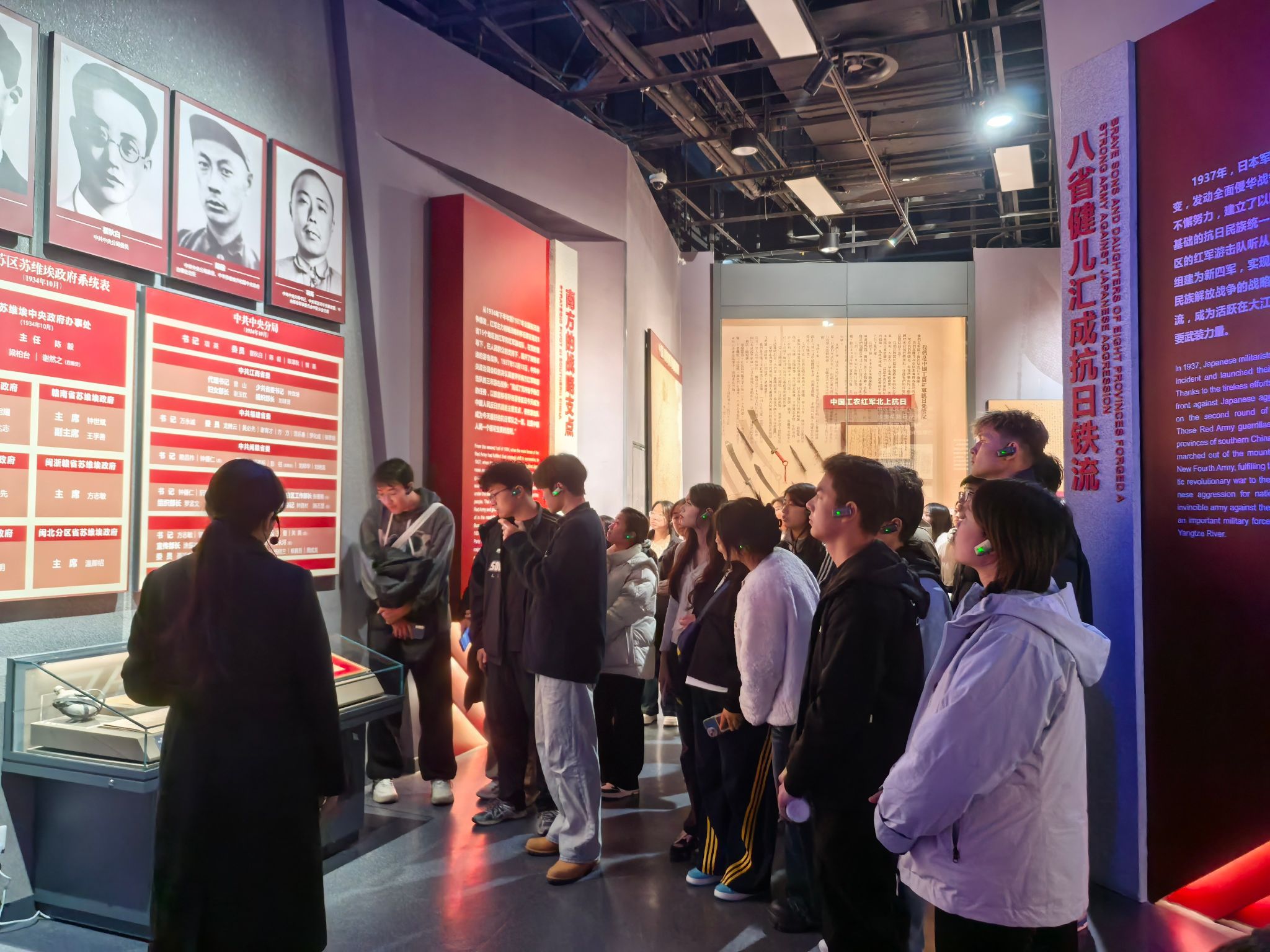 在新四军纪念馆内,同学们通过珍贵的历史文物、影像资料与生动场景复原,系统了解了新四军在华中地区艰苦卓绝的抗战历程,深刻感悟了不怕牺牲、艰苦奋斗的新四军革命精神。一段段震撼人心的革命故事,让同学们对党领导下的光辉革命历史有了更加鲜活、深刻的认识。