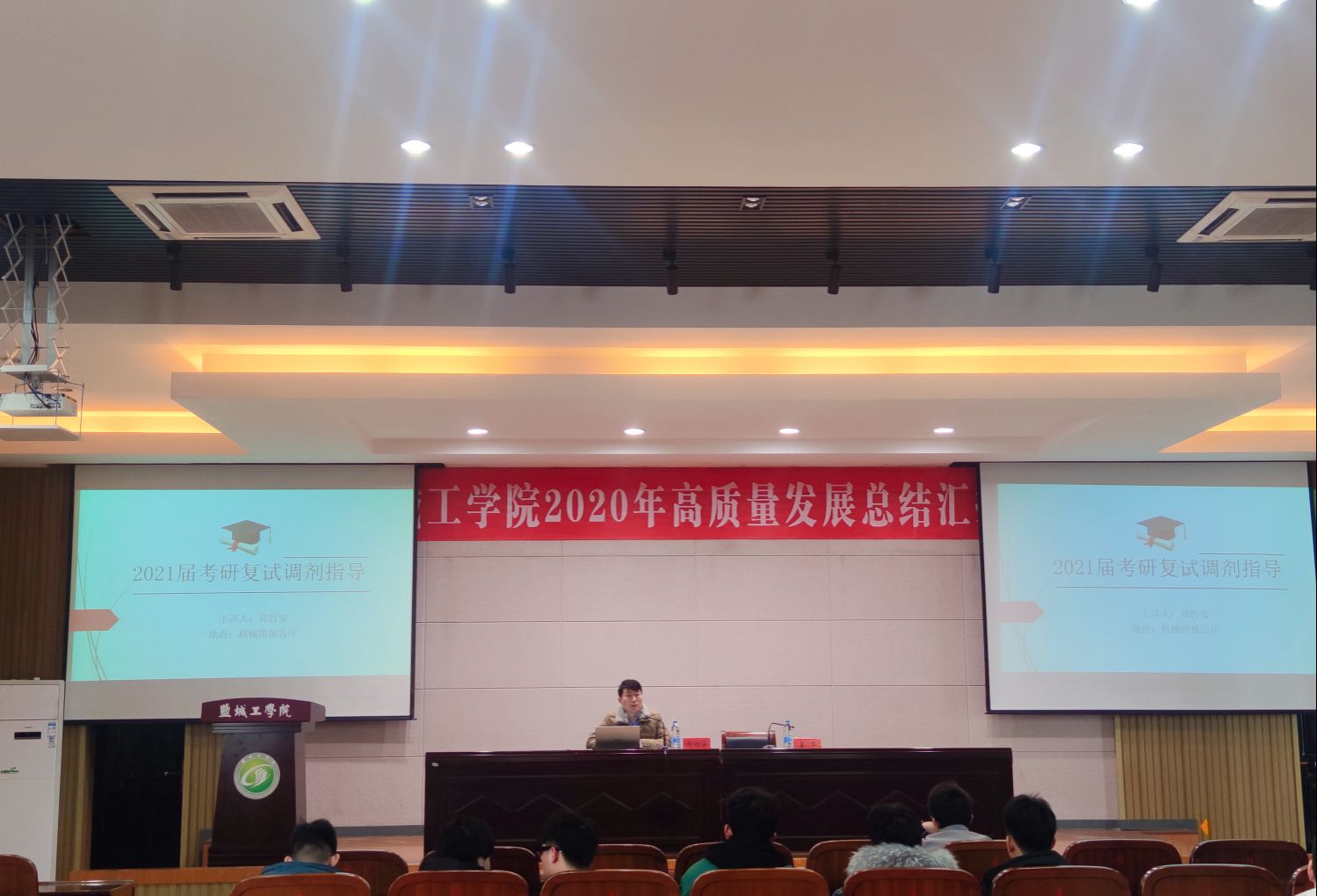 3月16日上午,汽车工程学院在南校区机械馆报告厅召开2021届毕业生考研复试及调剂指导会。车辆工程系主任郑竹安主讲,学工办负责人、毕业班辅导员及2021届考研笔试过线学生参加。学院党总支副书记姜华主持。