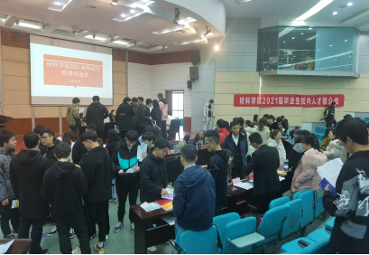 3月19日下午,材料学院在北校区五四报告厅举办2021届毕业生校园双选会,此次双选会吸引了来自省内外知名企业19家,提供岗位200余个。学院党委书记陈志华、学工办主任郭群娜、毕业班辅导员以及大四学生等200余人参加。