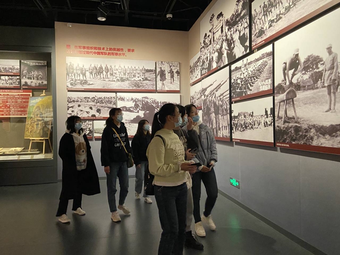 同学们怀着无比崇敬的心情走进展厅,不时驻足观看,了解新四军光辉的革命事迹。一幅幅图片,一张张图表,一件件实物,生动地展现了新四军从创立之初,到抗日战争再到解放战争一路艰苦卓绝的发展历程。讲解员的解说将同学们带回了那段波澜壮阔的难忘岁月,老一辈无产阶级革命家和革命先烈们坚定的政治信念、崇高精神、英雄壮举、为民情怀,无不让大家感到深受教育和鼓舞。