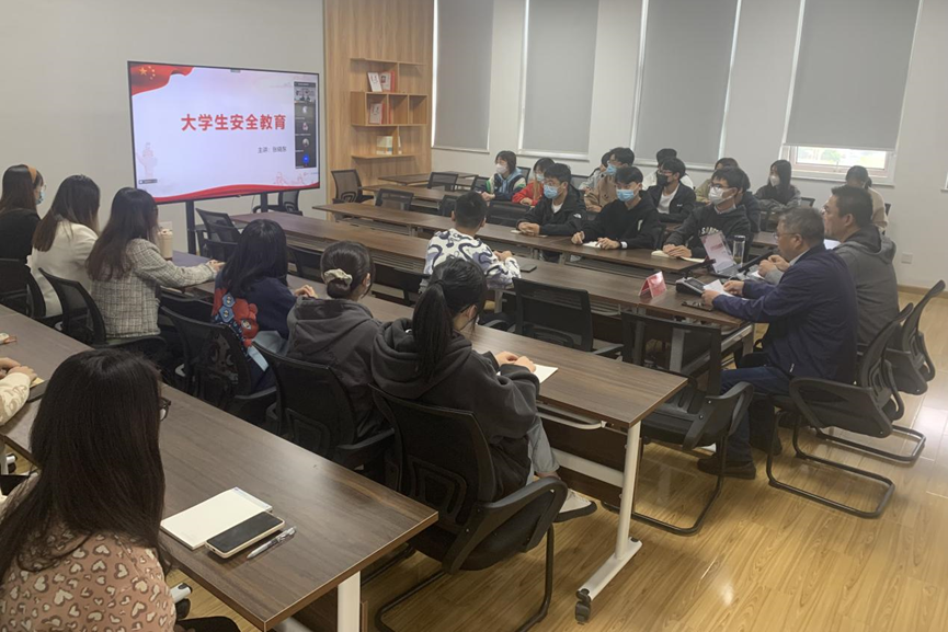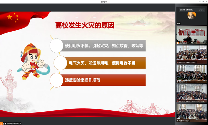 张晓东围绕“大学生安全教育”,讲解了大学生为何要重视安全教育、安全教育的目的、安全教育内容,着重讲述了维护重点领域国家安全、国土安全、经济安全、社会安全、粮食安全及网络安全的重要性。他结合案例,讲解消防安全、交通安全、人生安全、财产安全等领域受到危害的主要形式及处理方法,提醒同学们注意宿舍用电安全、防火防盗、防范电信诈骗。