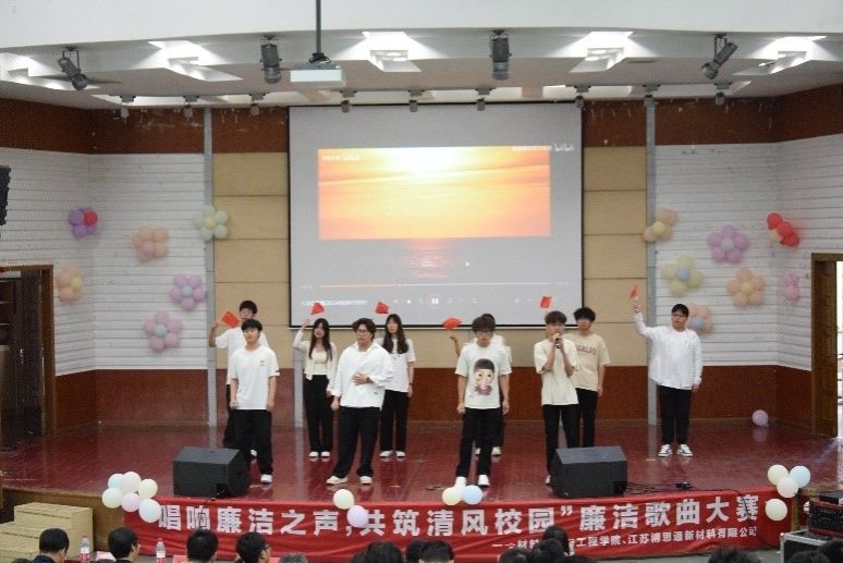为了进一步贯彻落实党纪学习教育要求,弘扬廉洁文化,加强师生的廉洁自律意识。6月12日下午,材料学院在知达楼五四报告厅举办了廉洁歌曲大赛,材料学院党委书记唐浩、院长罗驹华及江苏博思通新材料有限公司企业代表出席。