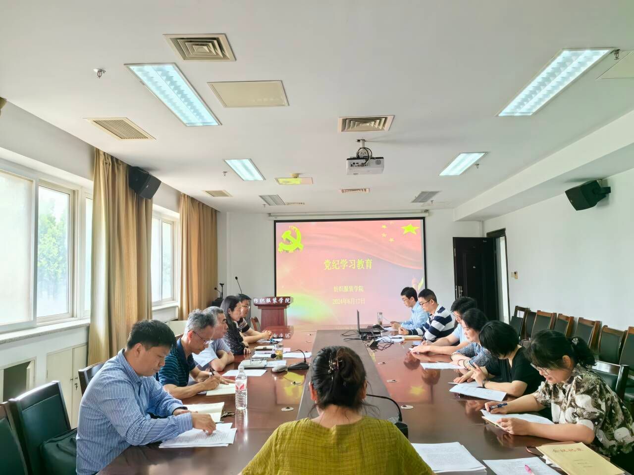 6月17日上午,纺织服装学院举办党纪学习教育读书班专题学习会,党总支书记宋孝浜主持学习,学院党纪学习教育读书班全体成员参加学习。