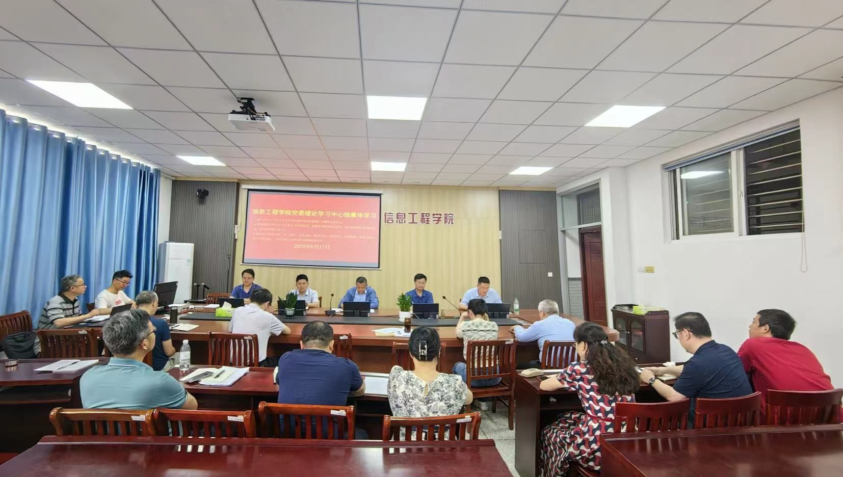 6月17日上午,信息学院党委理论学习中心组在怀德楼B410会议室召开了集中学习研讨会,主要聚焦于深入学习习近平总书记重要文章《习近平关于中国式现代化论述摘编》。会议由学院党委书记王爱军主持,党委理论学习中心组全体成员参加。