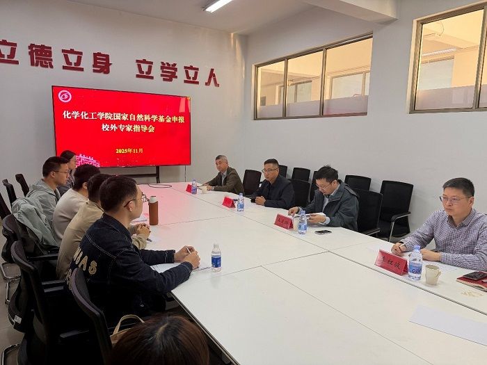11月16日下午,化学化工学院召开2026年度国家自然科学基金申报校外专家指导会,邀请清华大学王定胜教授对申报材料进行集中指导。院长戴勇主持会议,副院长祁刚、李红波出席。