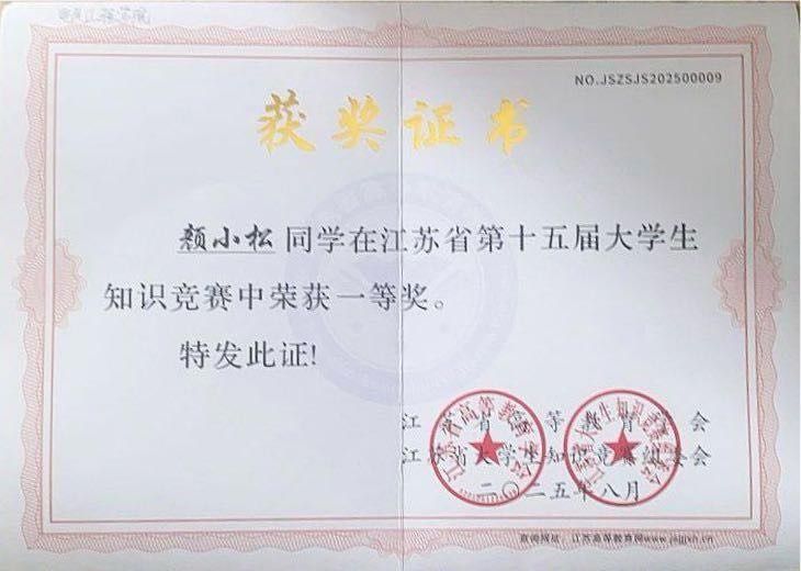 江苏省大学生知识竞赛是面向全省高校的一项重要学科竞赛,迄今已成功举办十五届。本届竞赛打破文理学科界限,全面考查学生的跨学科综合素质与知识广度,吸引了全省111所高校的54273名学生踊跃参与。经过激烈角逐与严格选拔,最终评选出优秀奖8211名、三等奖2730名、二等奖163名、一等奖17名,竞争异常激烈。